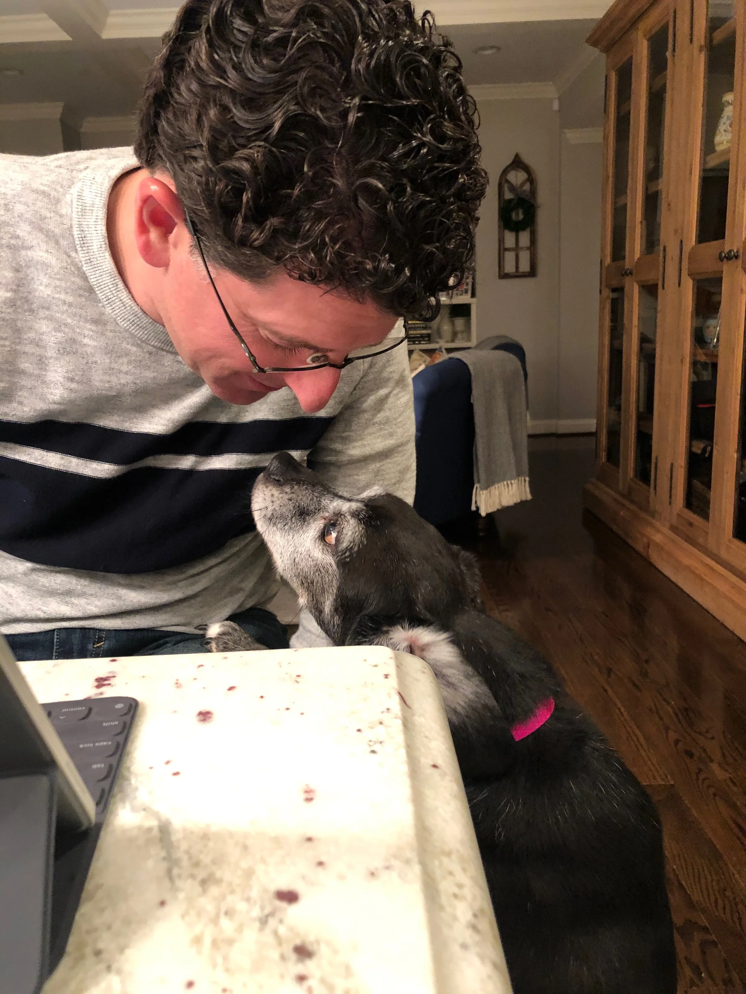 When Mike and the kids go off to school or work, he follows me around the house and sits at my feet while I work. When he could still make it up the stairs, we’d sneak up onto our bed for the perfect sunshine nap. These last few months, as we’ve come to grips with my diagnosis, Buddy has been there every step of the way. I think he knows something is different because he literally never leaves my side. We both long for our walking days together. He still loves anything warm - especially lying in front of the fire place or the oven, or on our exceptionally hot back deck in the summer. Oh, and he loves ham. The dog LOVES ham so, so much.