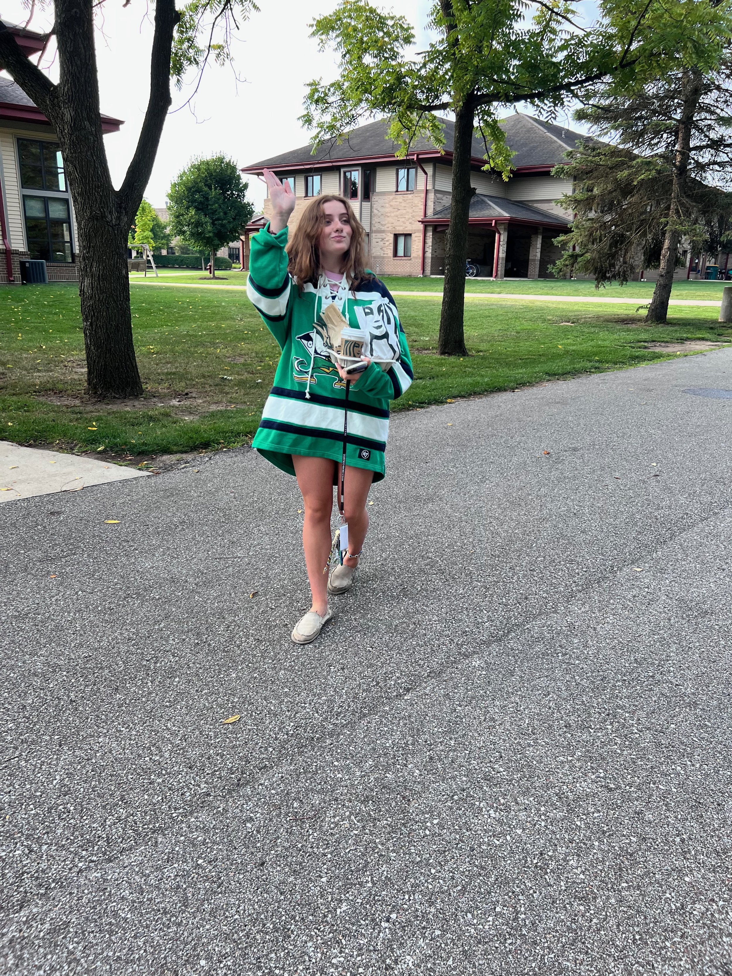 My goofball kid during the exact moment we drove away leaving her at college. She was laughing and so were we.